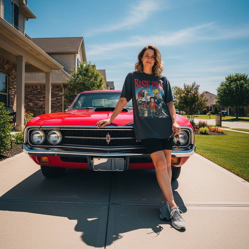 For the ultimate ‘cool girl’ vibe, go for an oversized vintage graphic tee and black biker shorts. This athleisure-inspired look is perfect for those active summer days or just lounging at home. Add a pair of chunky ‘dad’ sneakers and high-top socks to lean into the trend. It’s functional, edgy, and keeps you incredibly cool when the sun is out.