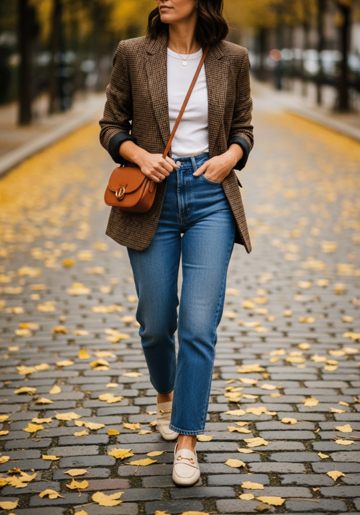 The plaid blazer is a fall staple. Worn over straight-leg jeans and a fitted tee, it gives off effortless street-style vibes.