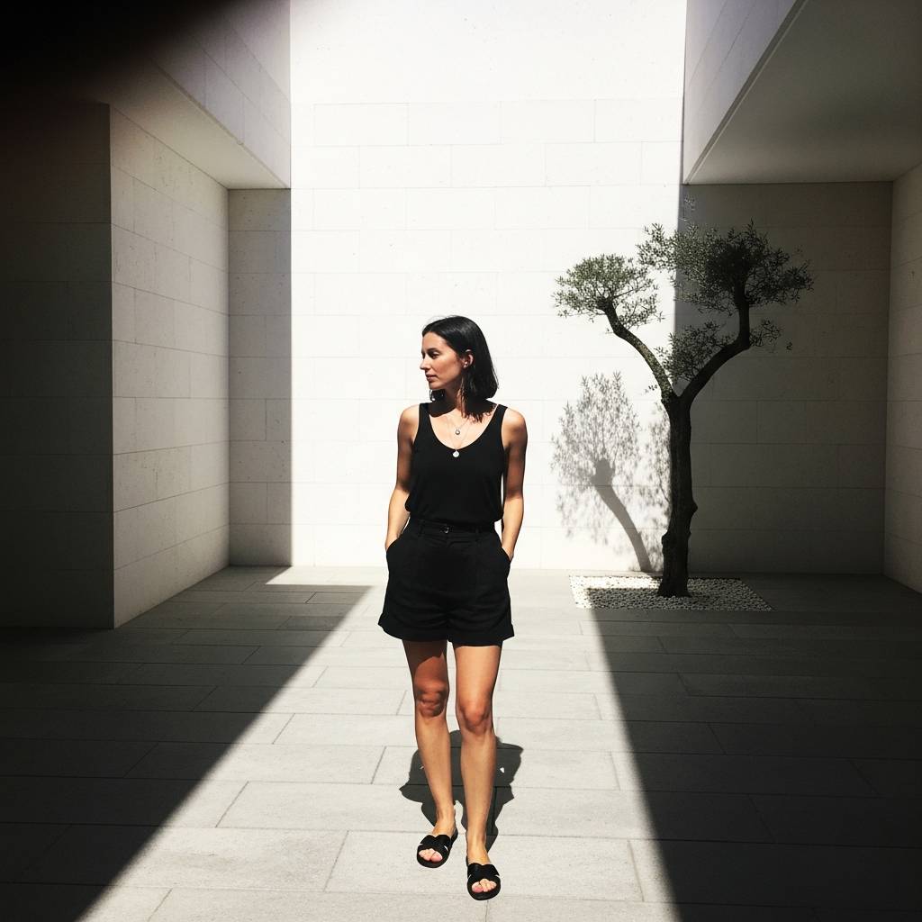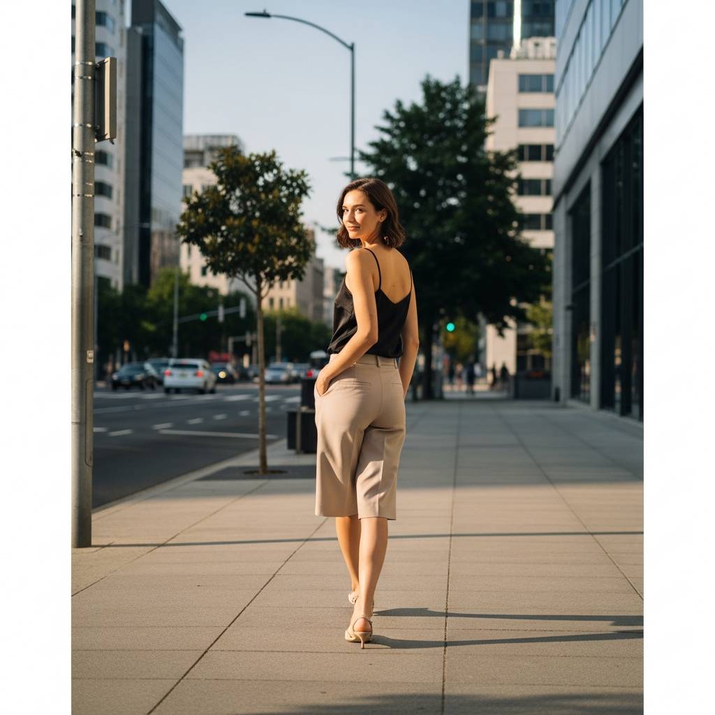 Bermuda shorts are making a massive comeback in the world of minimal fashion. Choose a pair in a structured fabric like cotton-twill or a wool blend in a soft stone color. Contrast the structure of the shorts with the fluidity of a black or cream silk camisole. This juxtaposition of textures creates an expensive look that is perfect for a sophisticated summer evening. Finish with minimalist strappy sandals.