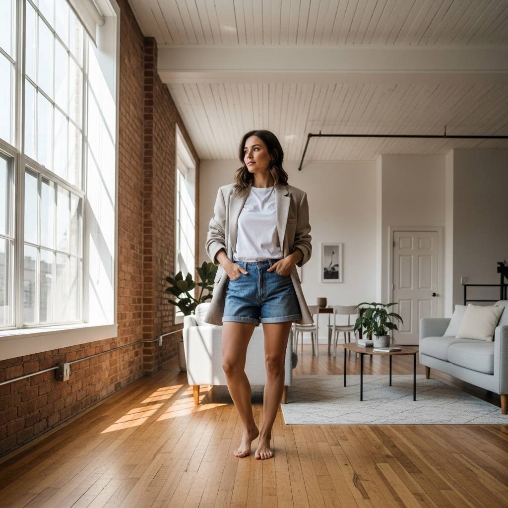 For those cooler summer mornings or air-conditioned offices, layering an oversized lightweight blazer over denim shorts is a game-changer. Choose light-wash denim with a raw hem and pair it with a basic white tee. The blazer should be in a neutral tone like camel or sage green. This look balances casual and formal elements perfectly, providing a sophisticated edge to a standard summer staple.