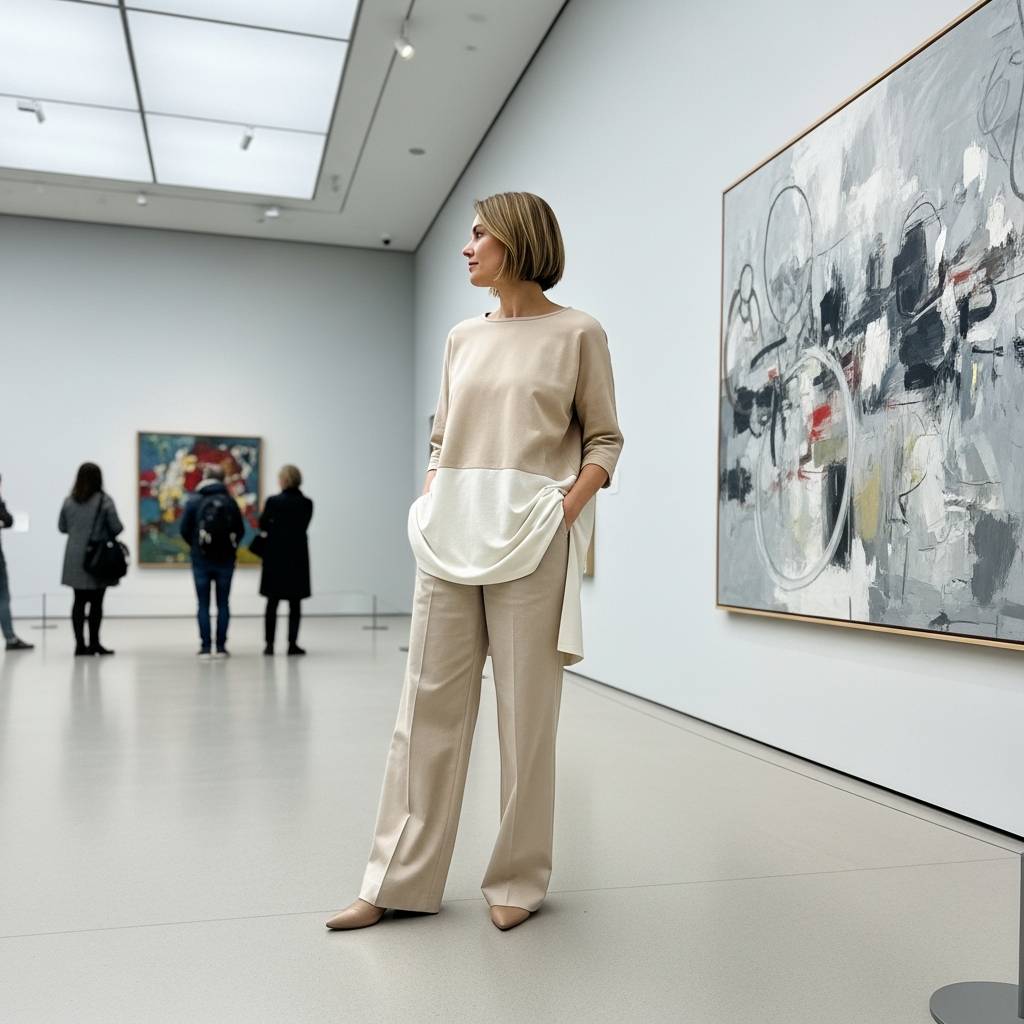 The ‘Stick of Butter’ aesthetic is a favorite among minimalist enthusiasts. Combine different shades of beige, cream, and sand. Think oatmeal-colored shorts paired with a cream-colored sleeveless knit. The lack of color contrast allows the focus to remain on the silhouette and the quality of the fabrics. It is a soft, approachable way to do minimal chic that looks incredibly high-end.