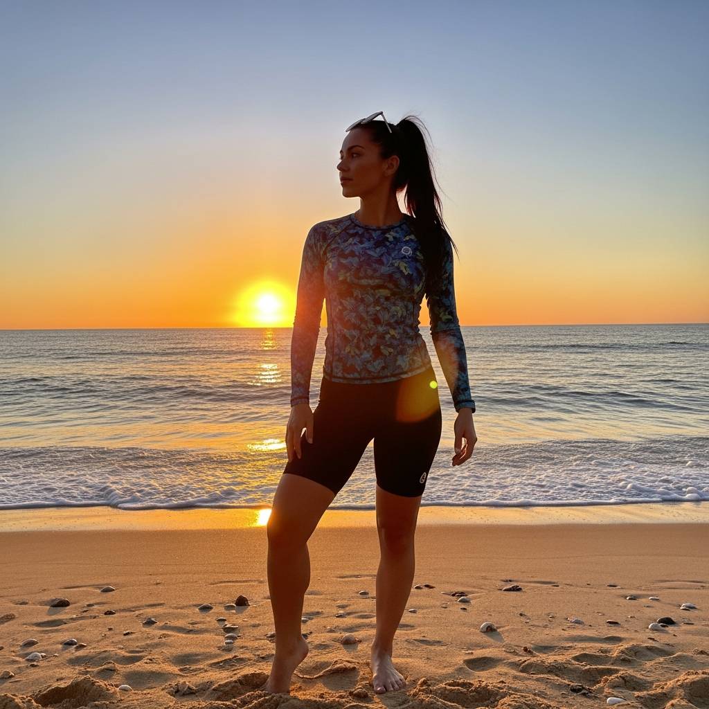 For those who prefer a more active approach to summer, a stylish rash guard paired with matching biker shorts is the way to go. Modern swimwear brands are creating these pieces with high-fashion prints and sleek cuts that look as good as they perform. This outfit provides excellent sun protection while allowing for full range of motion, whether you are surfing or paddleboarding. The athletic silhouette is very on-trend and can be easily styled with a baseball cap and sporty sandals for a cool, urban-beach vibe.