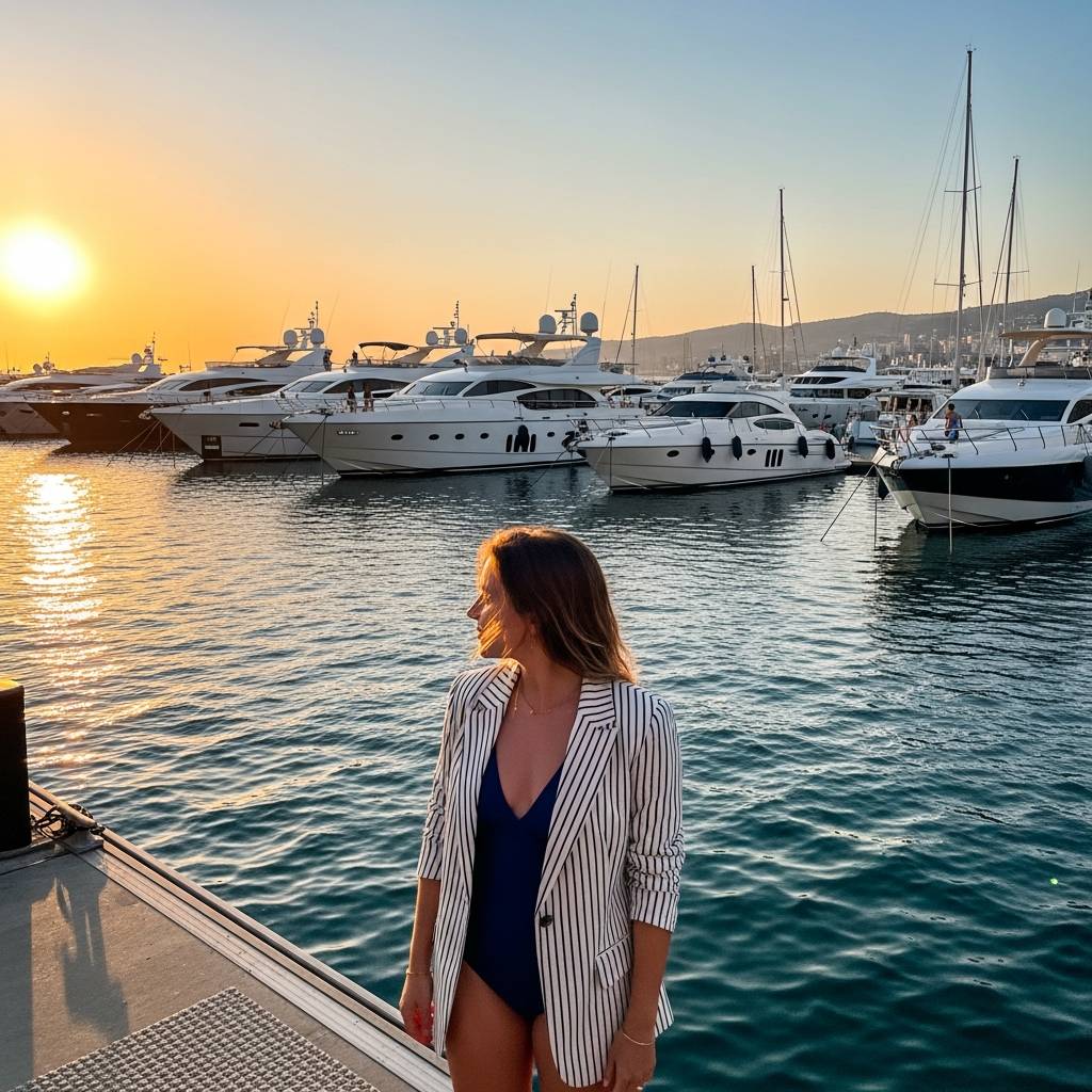For a sophisticated, ‘Old Money’ aesthetic, layer a lightweight navy and white striped blazer over a classic navy one-piece swimsuit. This look is perfect for a yacht club setting or an upscale seaside dinner. The blazer adds a structured, professional touch to the swimwear, making it feel more like an actual ensemble. Pair it with white tailored shorts and loafers when you are off the boat. It is a timeless, preppy look that never goes out of style and always looks expensive.