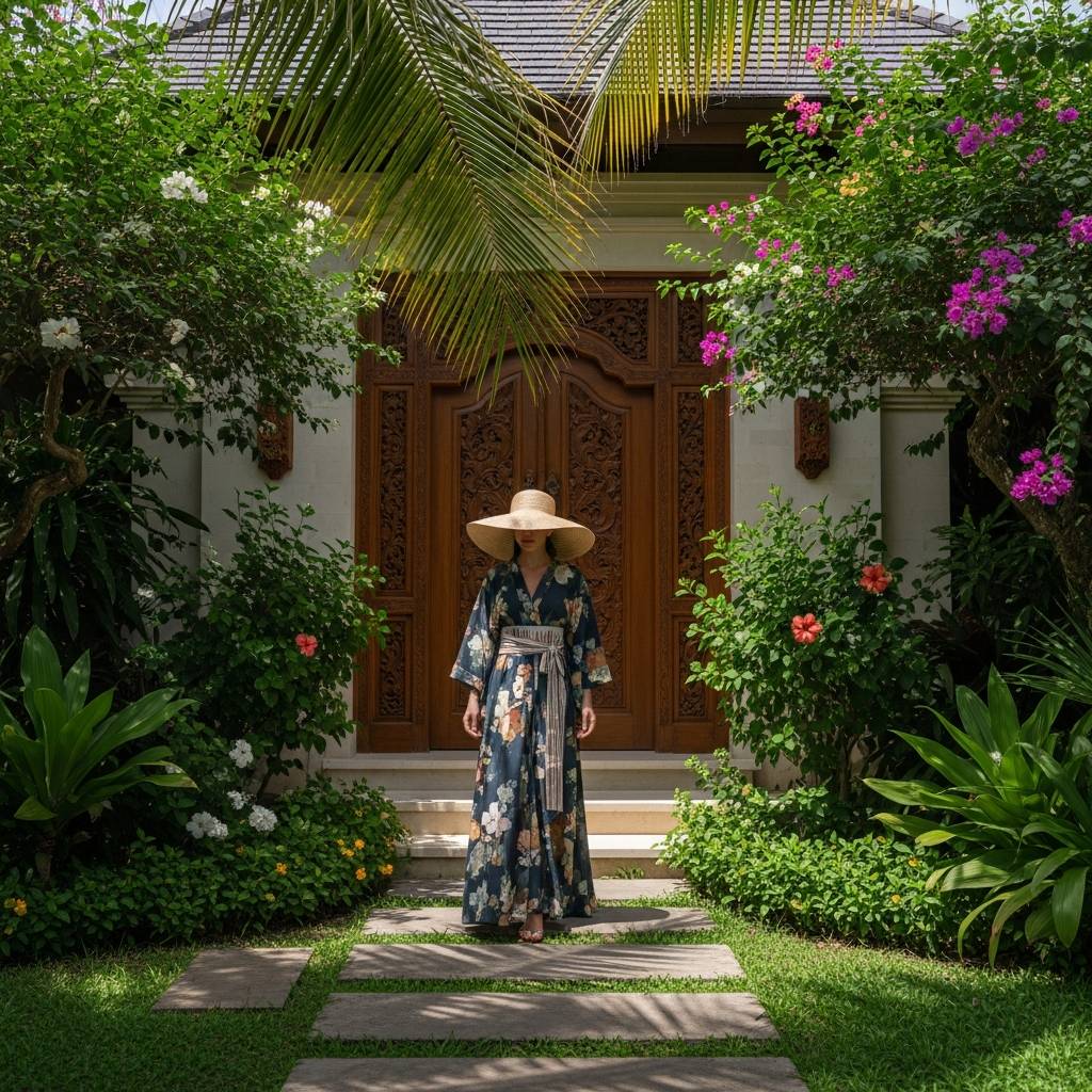 A kimono wrap dress is incredibly versatile because it can be worn completely closed as a dress or open as a duster coat. Over a swimsuit, it provides a sophisticated layer that can be adjusted for more or less coverage. The oversized straw hat adds the final touch of classic summer glamour, protecting your face while making a major style statement. This outfit is perfect for those who want a look that is both functional and incredibly chic, suitable for the most exclusive beach destinations.