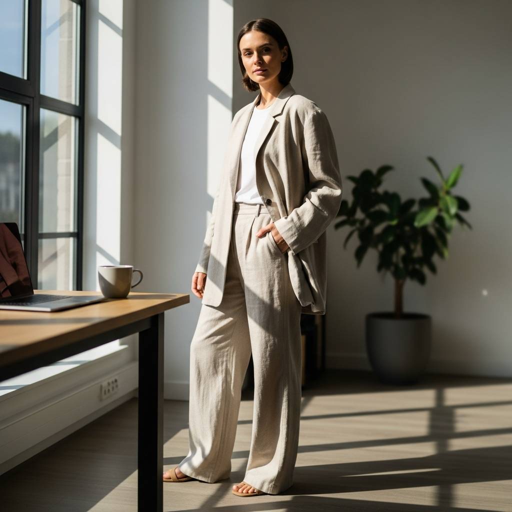 A linen blazer is the ultimate staple for any professional summer wardrobe. Unlike heavy wool blends, linen allows for maximum airflow while providing that structured silhouette necessary for the corporate world. Pair an oversized beige or cream linen blazer with matching trousers for a sophisticated monochromatic look, or throw it over a simple camisole and dark wash jeans for a casual Friday. The natural texture of linen adds an effortless elegance that feels both relaxed and refined, ensuring you stay cool even when the AC is struggling.
