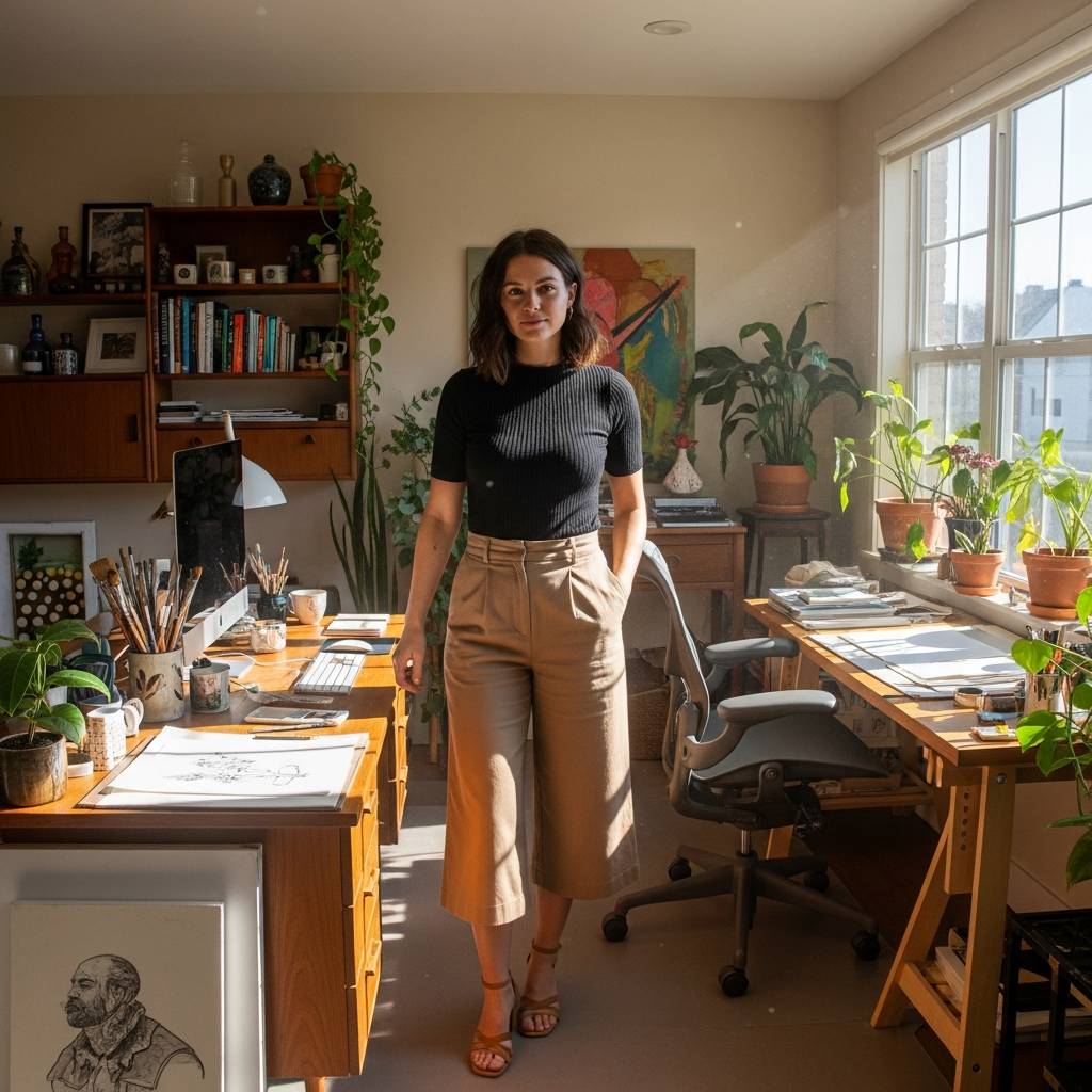 High-waisted linen trousers are a game changer for office comfort. The high rise provides a flattering fit that looks great with tucked-in blouses or even high-quality basic tees under a cardigan. To avoid the ‘pajama look’ often associated with linen, look for trousers with tailored details like pleats, pockets, and a structured waistband. Soft pastels or classic whites look incredibly fresh in the summer sun and can be grounded with a dark leather belt and matching loafers for a complete professional ensemble.