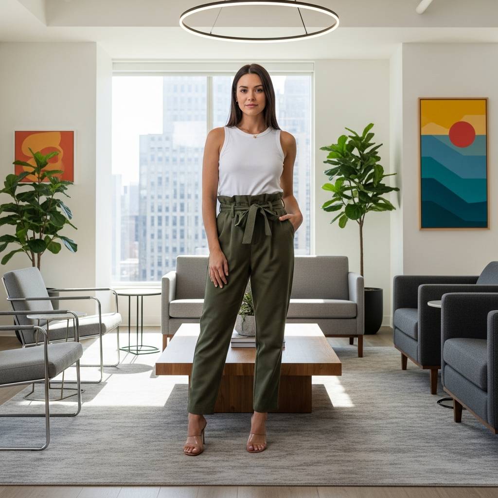 Paperbag waist pants are both stylish and forgiving. The gathered waist adds a decorative element that eliminates the need for a complex belt, and the loose fit through the legs is ideal for staying cool. In a professional setting, choose fabrics like Tencel or lightweight wool in professional shades like charcoal or tan. Tuck in a fitted sleeveless top to highlight the waist detail and pair with block heels to elongate the legs. It’s a chic, modern look that provides all-day comfort.