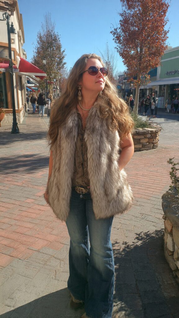 28. Faux Fur Vest + Sweater + Bootcut Jeans