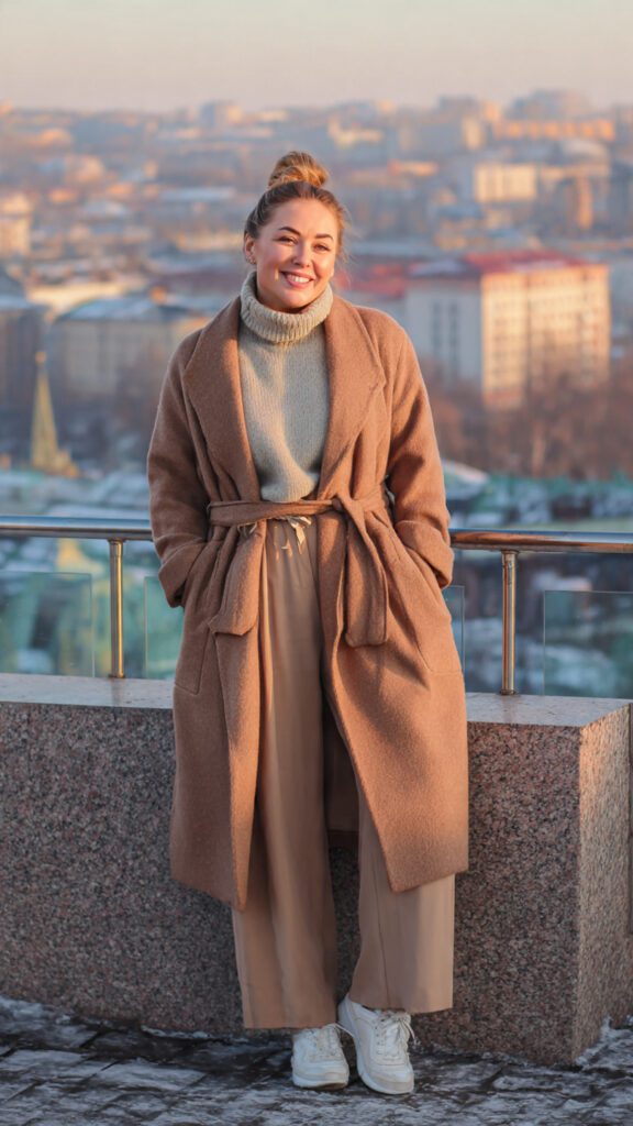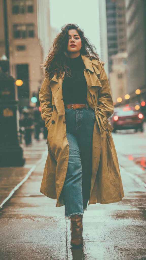 Tip: Trench coats in camel shades highlight curves beautifully.