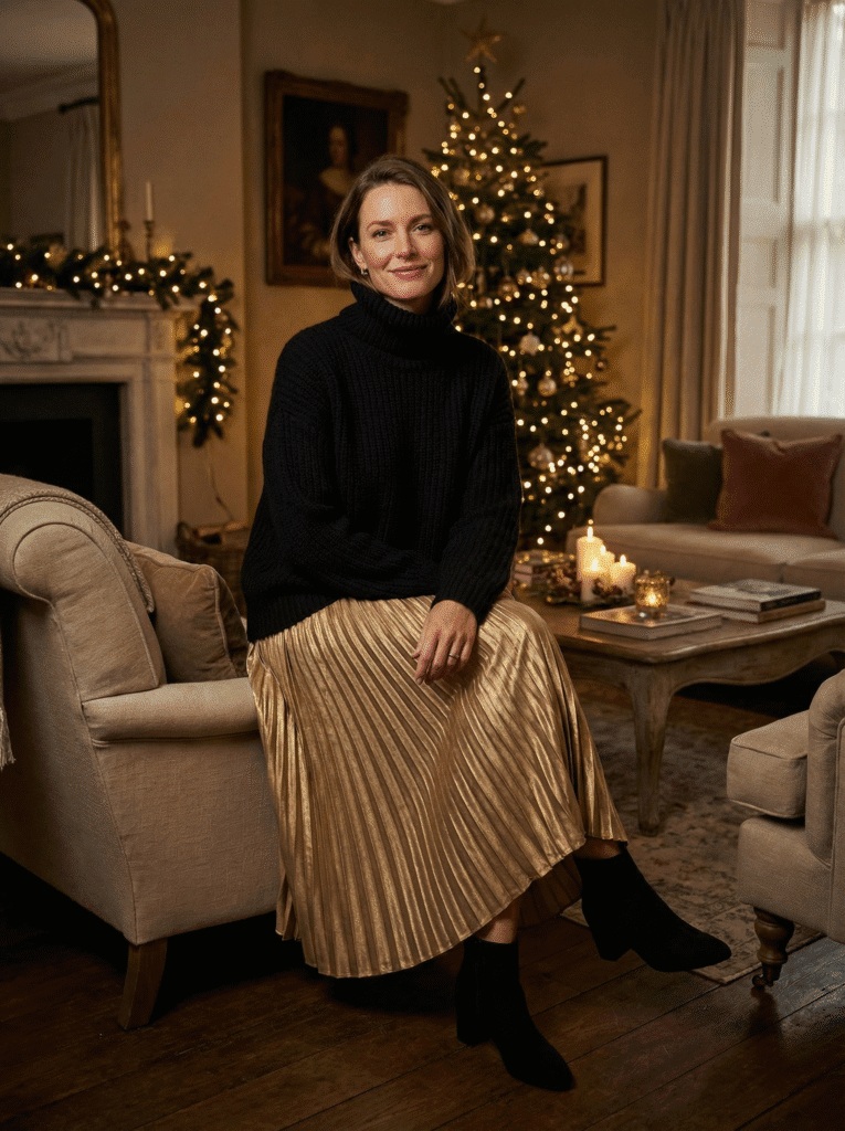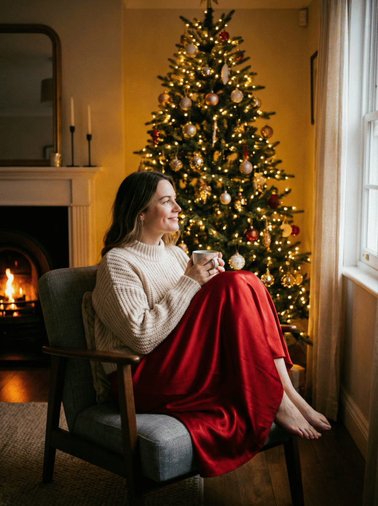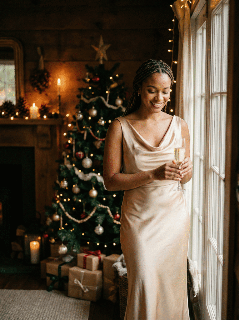 Flattering and warm — ideal for dinners and indoor celebrations.