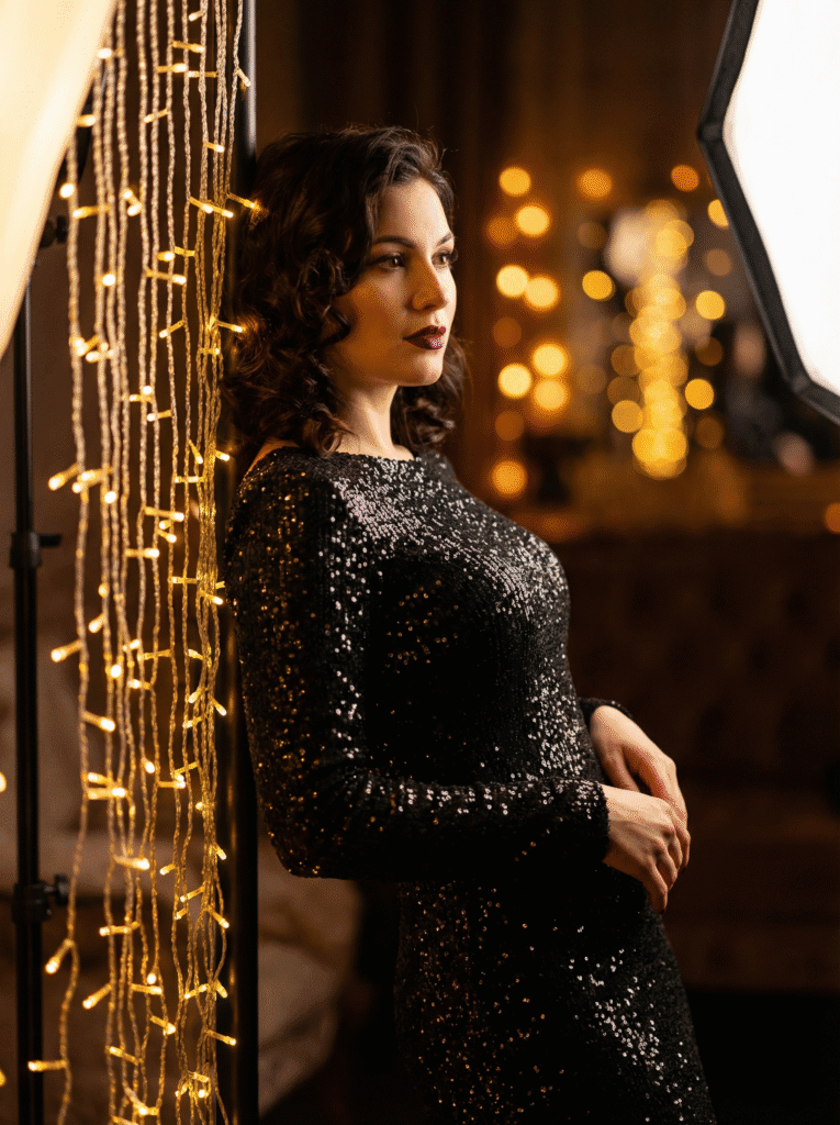 ⭐ IDEA 29 — Black Sequin Dress + Red Lip