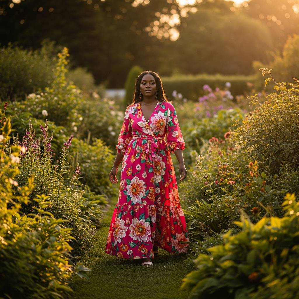 A maxi dress with bold, oversized floral patterns is a must-have for the season. The length provides an elegant silhouette while the flowy fabric keeps things breezy. For Black women, bright colors like fuchsia, electric blue, and marigold look absolutely stunning against deeper skin tones. This look is incredibly versatile; you can dress it down with flat sandals for a daytime look or elevate it with wedges and a statement clutch for a summer wedding or formal dinner.