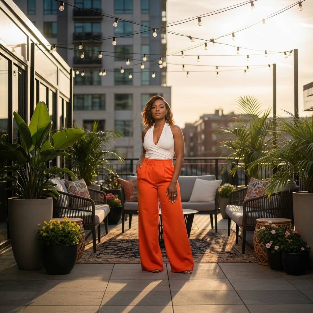 Wide-leg trousers in a flowing fabric like chiffon or rayon provide a dramatic and airy silhouette. Pairing them with a halter neck top draws attention to the shoulders and creates a beautiful vertical line. This look is perfect for dinner dates or evening events where you want to feel comfortable but look glamorous. Choose bold colors or interesting patterns to make the trousers the focal point of your outfit.