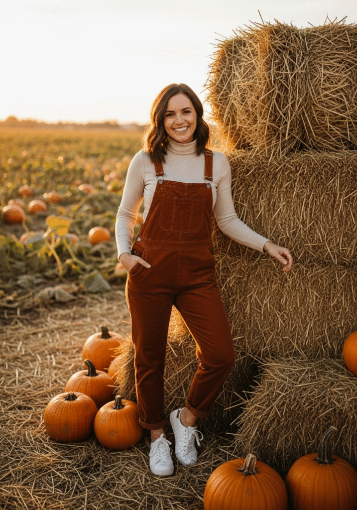 Cute and youthful, overalls work surprisingly well for Thanksgiving when layered right. Choose corduroy for extra fall vibes.